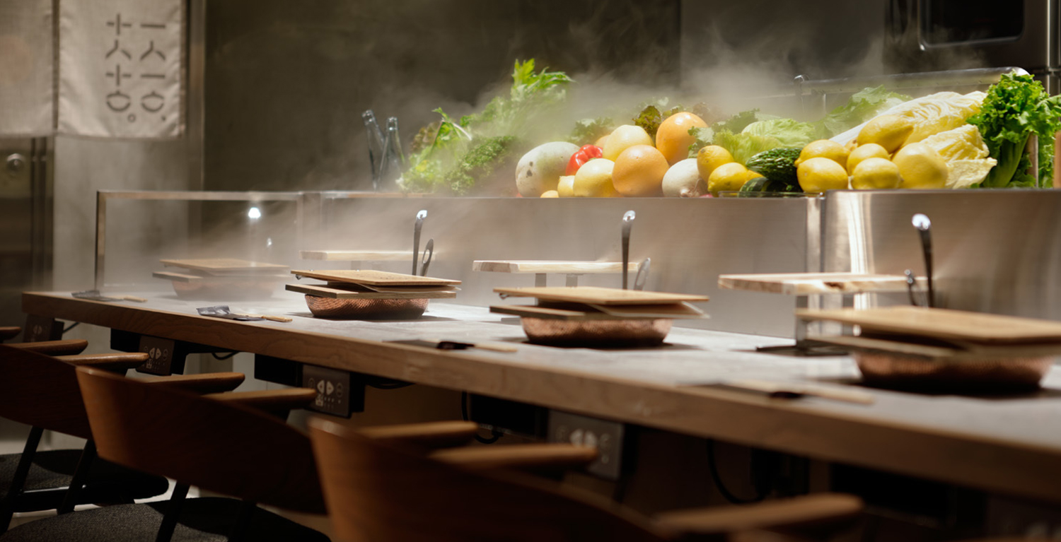 The open kitchen and integrated counter has special seats where you can enjoy shabu shabu with the fresh ingredients before you.